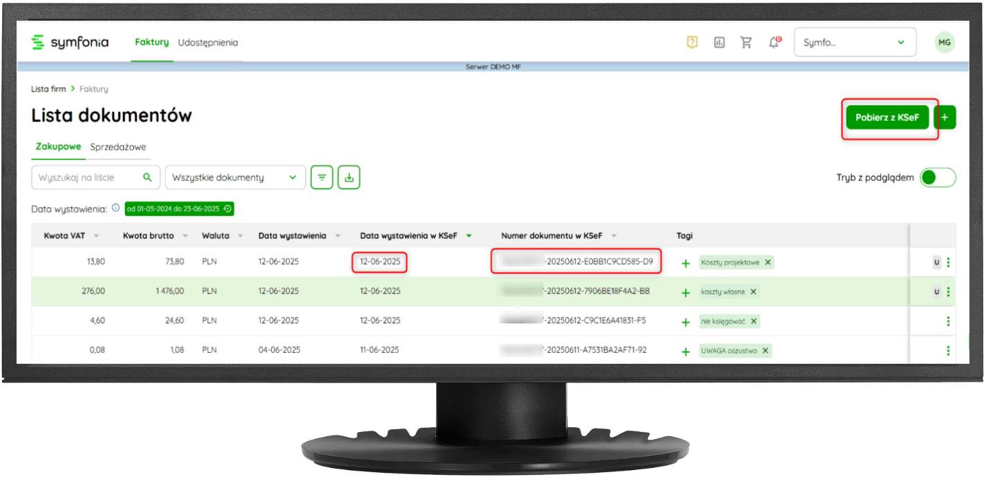 - Przekazywanie statusów faktur oraz numer identyfikacyjny KSeF